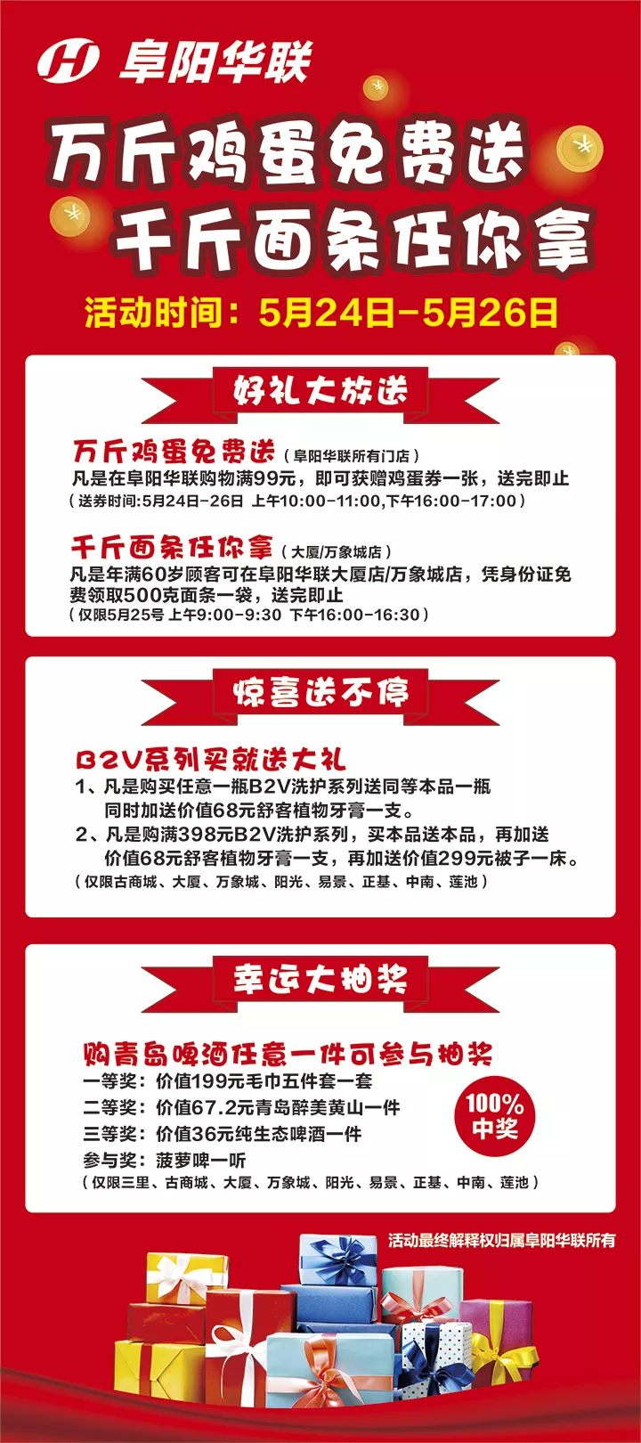 【阜陽(yáng)華聯(lián)】免費!一萬(wàn)斤雞蛋一千斤面條,阜陽(yáng)華聯(lián)不讓你空手而歸