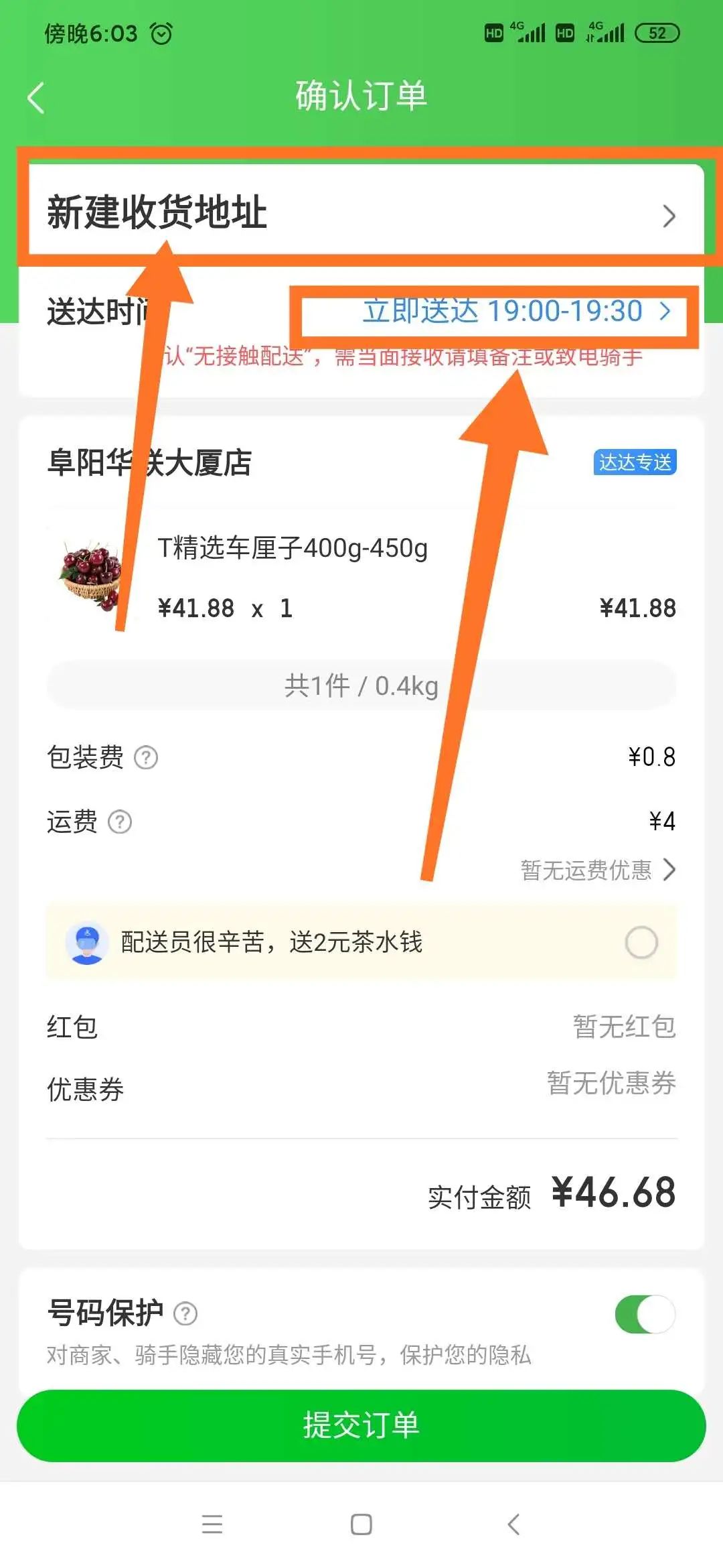 ③選擇好商品后,點(diǎn)擊下方“去結算”按鈕。