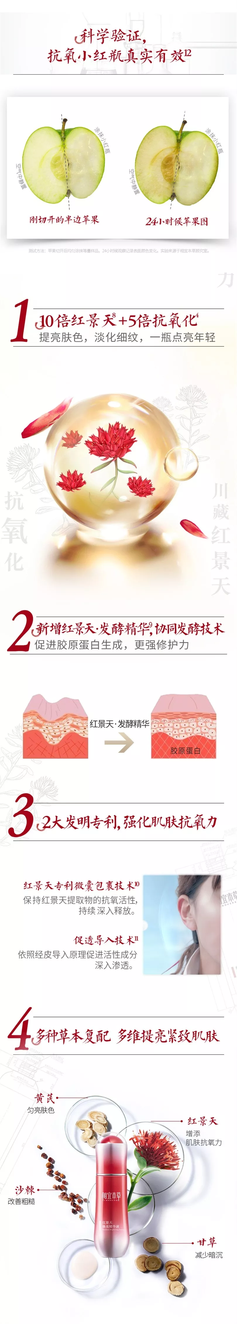 配合紅景天系列精華水+精華乳+眼霜使用