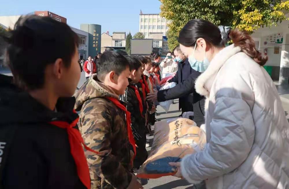在寒冬里為孩子們送去保暖羽絨服。
