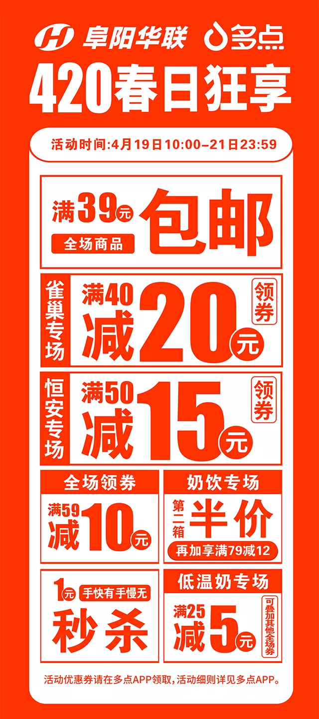 【阜陽(yáng)華聯(lián)】420春日狂享高能預警!前方大波優(yōu)惠來(lái)襲!