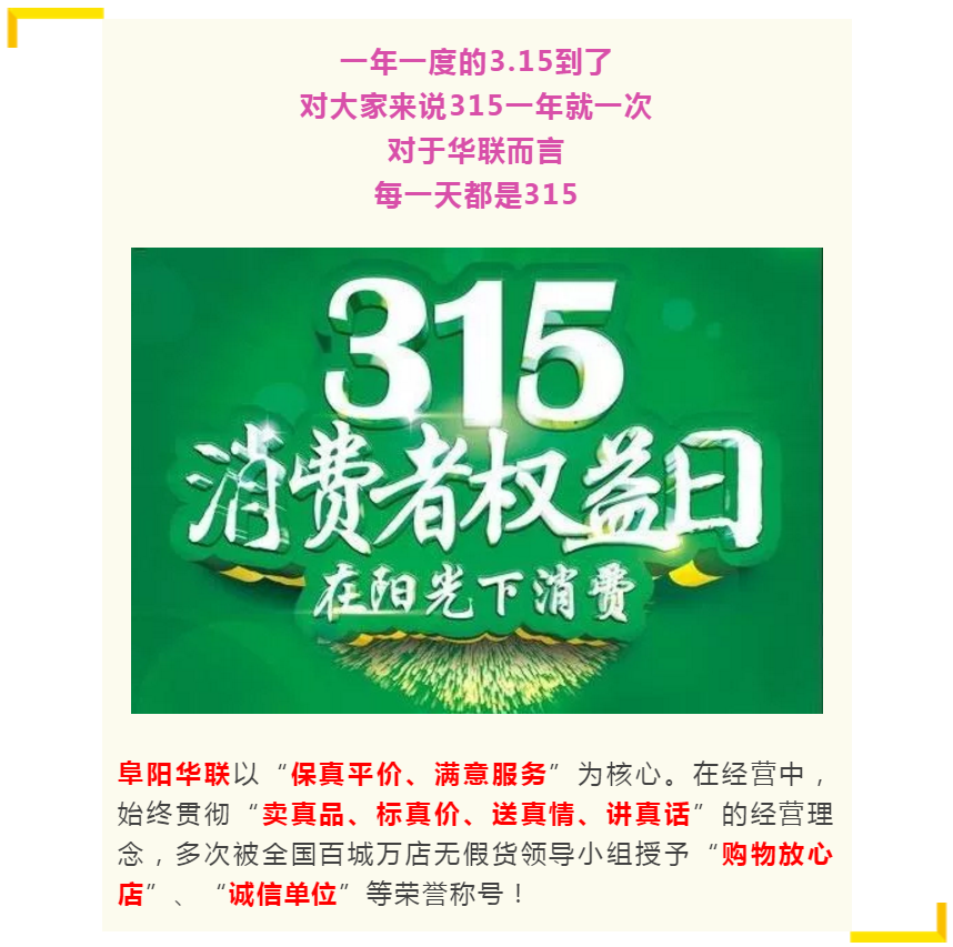 【阜陽(yáng)華聯(lián)】315消費者權益日,阜陽(yáng)華聯(lián)&聯(lián)合利華