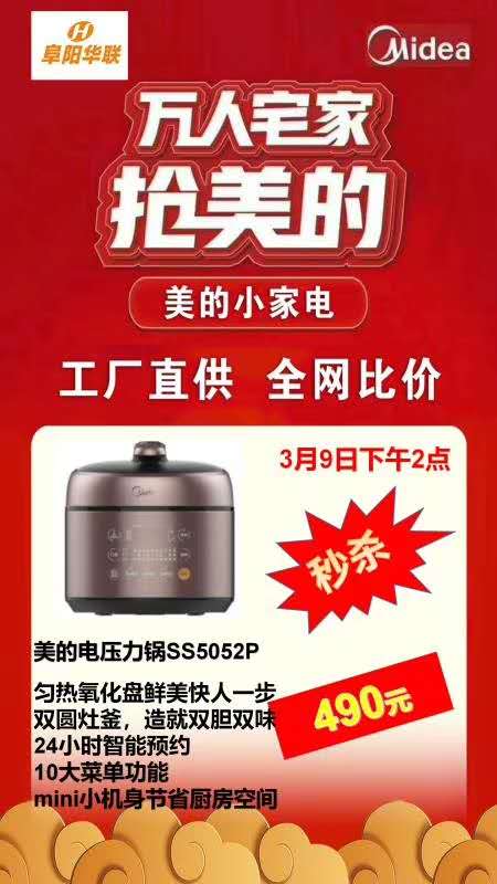 【你好阜陽(yáng),我是華聯(lián)--美的電器秒殺活動(dòng)】第一彈!
