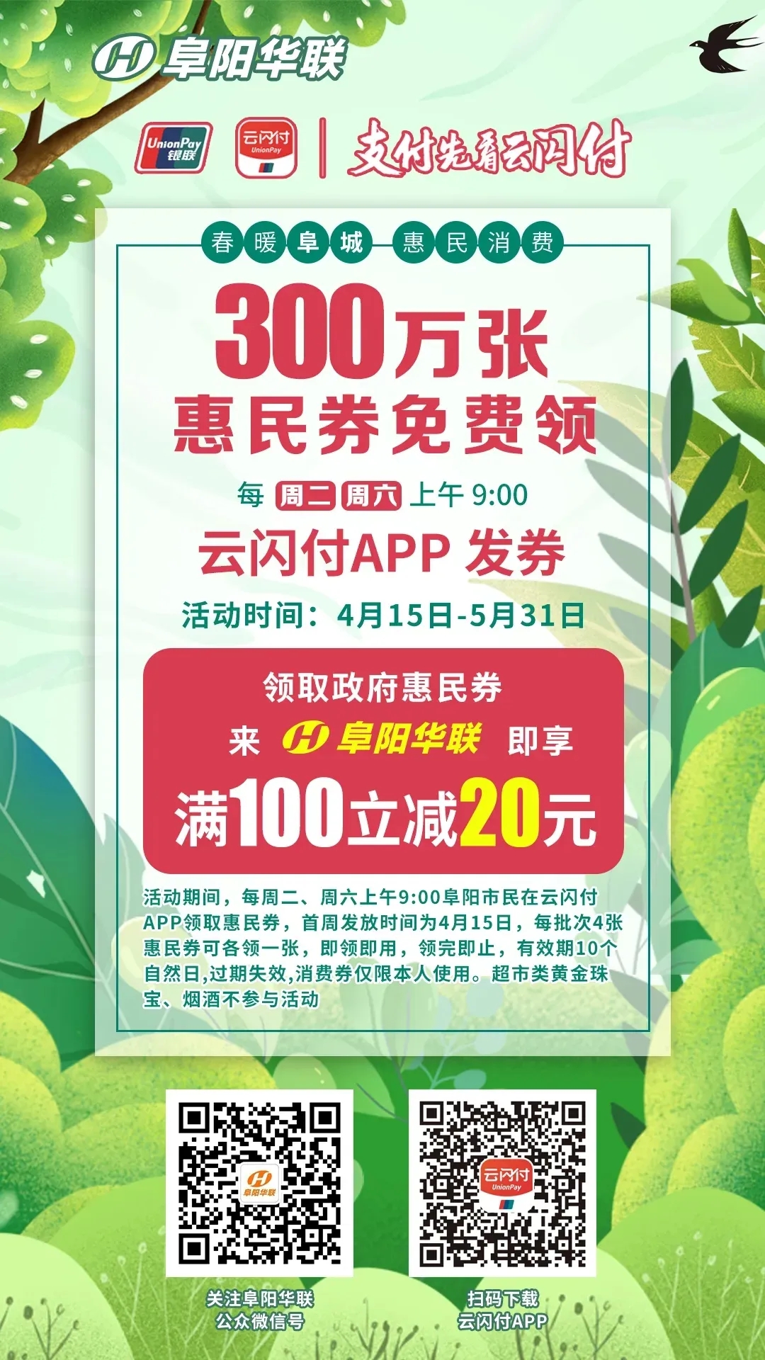 10日內到阜陽(yáng)華聯(lián)任一門(mén)店消費