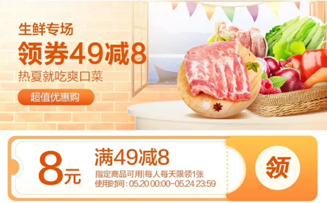 專(zhuān)場(chǎng)三:生鮮專(zhuān)場(chǎng)49減8