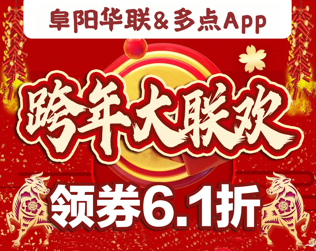 線(xiàn)上跨年大聯(lián)歡 | 阜陽(yáng)華聯(lián)多點(diǎn)App跨年嗨購!千款商品61折! 超級爆款低至0元!