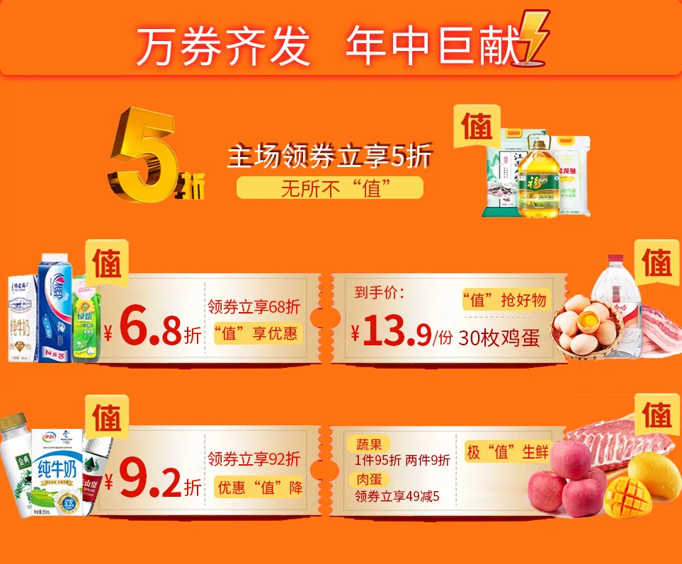 本次線(xiàn)上大促涵蓋豐富:⑤折神券,⑥⑧折專(zhuān)場(chǎng),低折生鮮,限時(shí)開(kāi)搶?zhuān)€有豐富驚喜等你來(lái)體驗!
