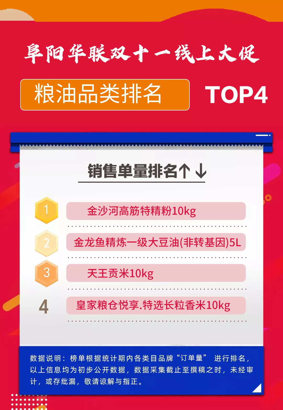 響應政策提倡,阜城市民合理購置民生商品,糧油品類(lèi)穩居雙11訂單榜首,面粉,大米、食用油、鮮雞蛋、純牛奶等熱賣(mài)……