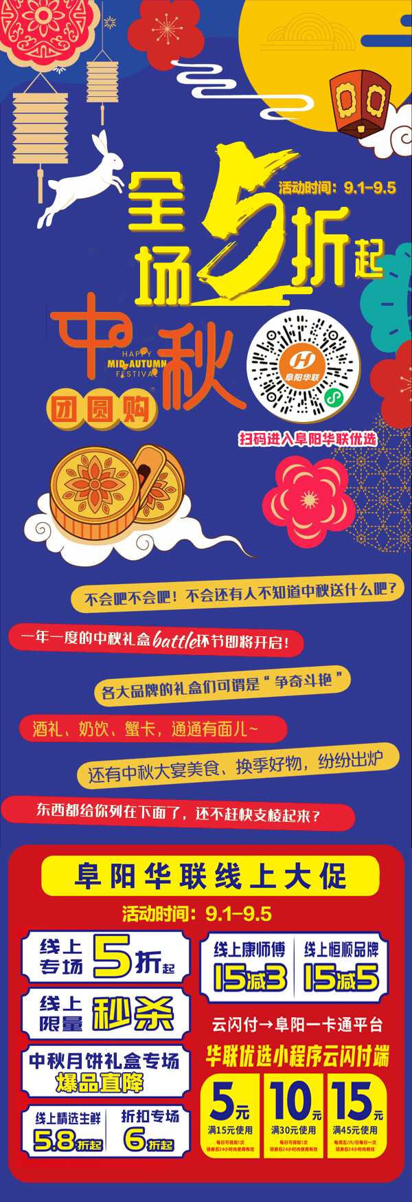 全場(chǎng)5折起 | 阜陽(yáng)華聯(lián)優(yōu)選“中秋團圓購”濃情開(kāi)啟!