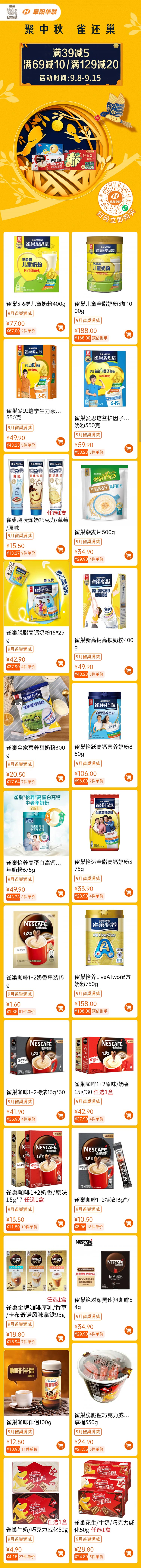 聚中秋·雀還巢 | 雀巢系列奶粉/休食/咖啡超值滿(mǎn)減,鉅惠中秋!